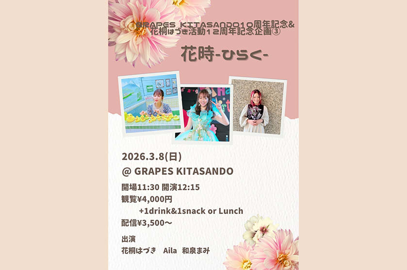 GRAPES KITASANDO 10周年記念&花桐はづき活動12周年記念企画③ 花時 -ひらく-