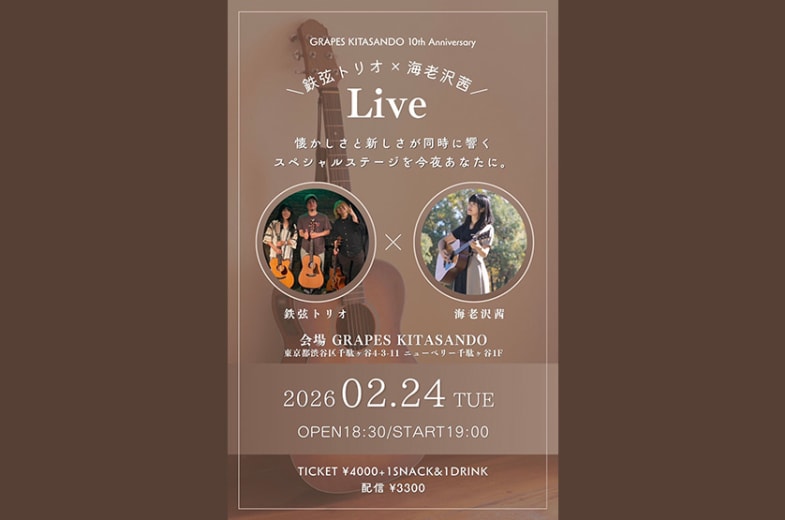 GRAPES KITASANDO 10th Anniversary【鉄弦トリオ×海老沢茜 LIVE】