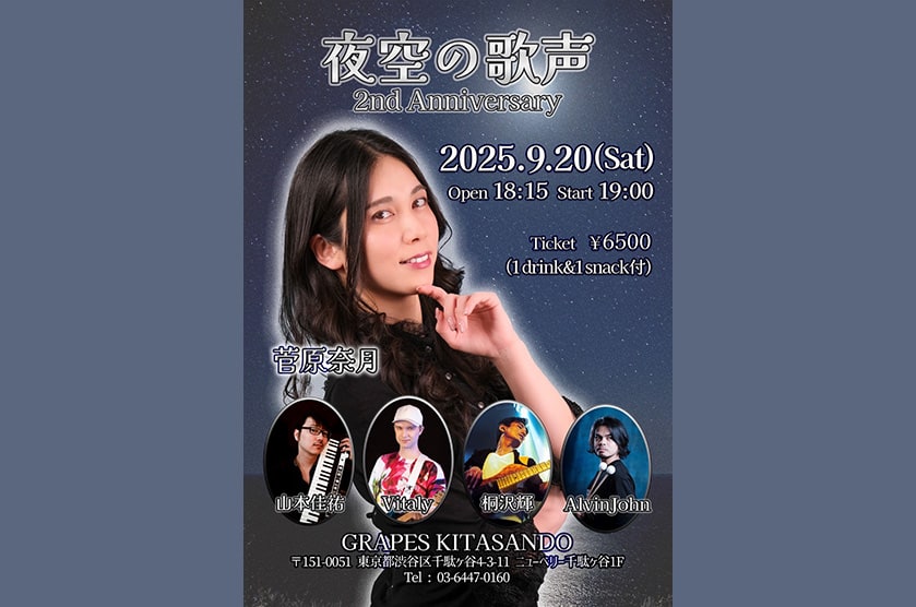 - vo.菅原奈月 / pf.山本佳祐 / gt.Vitaly / ba.桐沢輝 / dr.AlvinJohn