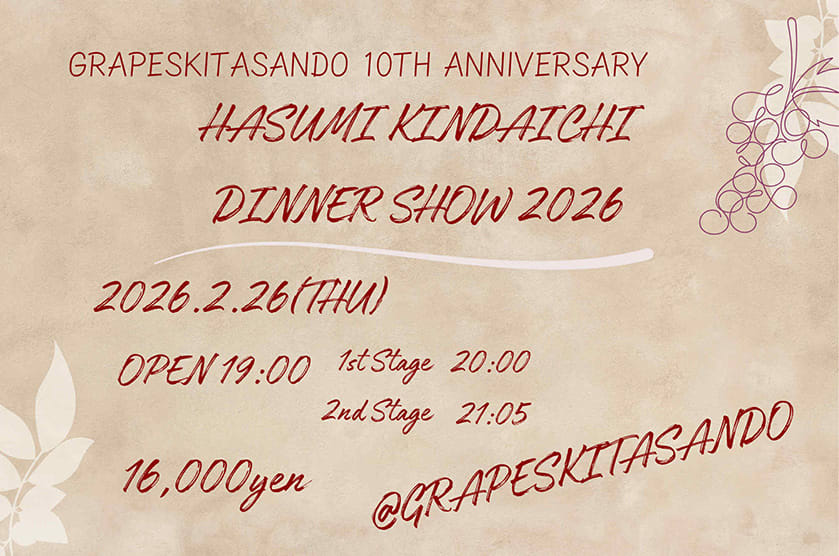 GRAPES KITASANDO 10TH ANNIVERSARY HASUMI KINDAICHI DINNER SHOW 2026