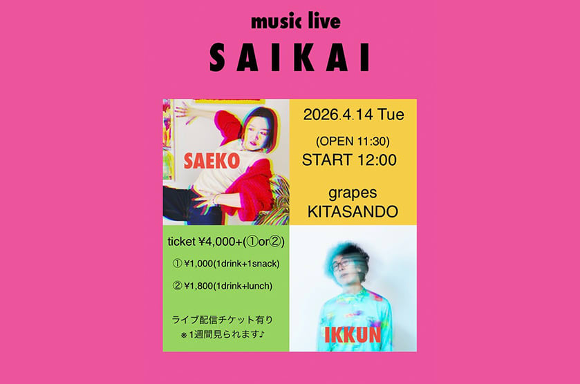 【オンラインチケット】 3,300円 / さえこといっくん応援付きチケット4,400円 / 出演者にドリンク1杯付き応援チケット5,500円 ※アーカイブは1週間ご覧頂けます。